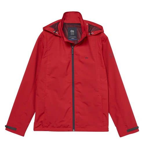La marca TBS presenta también el modelo femenino Fajves, un cortavientos en tejido otomano, con cierre cremallera a contraste y membrana Impermeable, disponible en tres combinaciones de colores muy marineros: rojo, blanco y azul marino. Su precio es también de 199,90€.