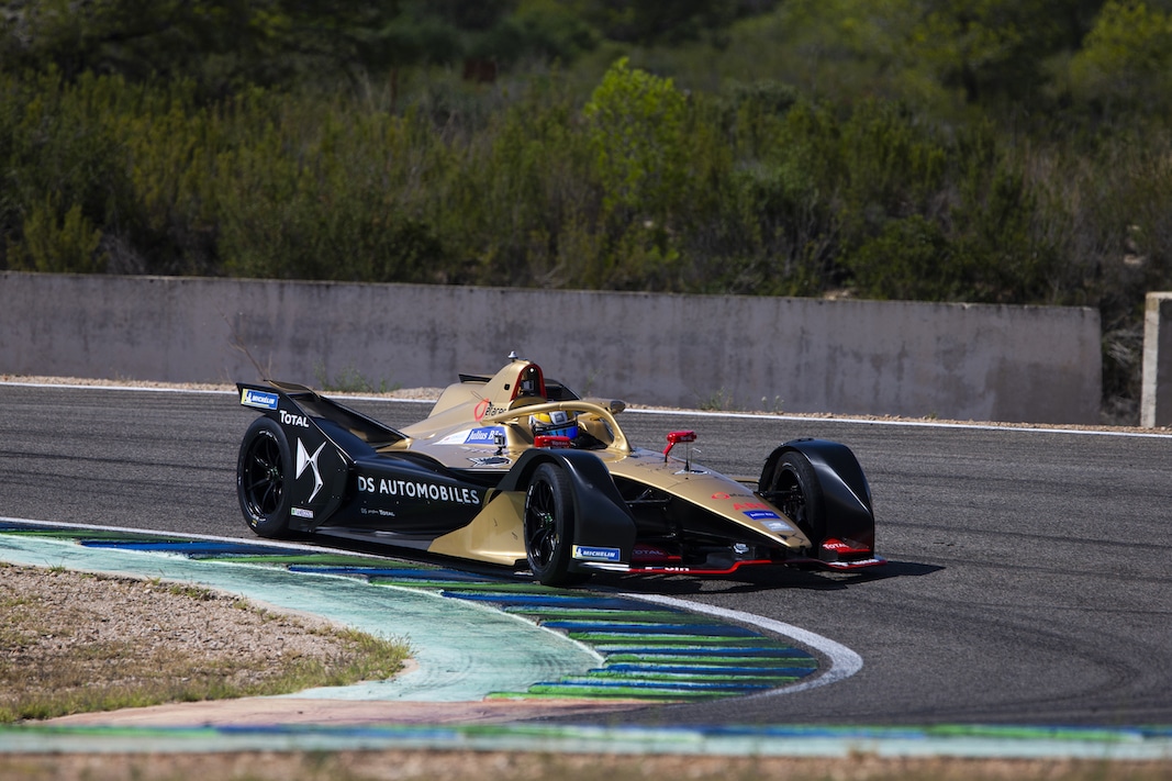 El E-TENSE FE 19, el monoplaza de la Formula E, está equipado de un grupo propulsor de 250 kW (338 cv) desarrollado por los ingenieros de DS Performance y presenta un nuevo diseño con una aerodinámica significativamente revisada.