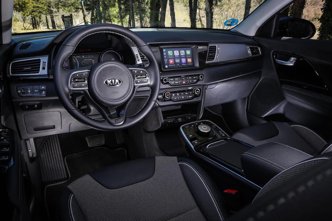 El interior se diferencia del de otras versiones del Niro por una serie de nuevas funciones y elementos de diseño. El estilo de la consola central constituye el cambio principal en el e-Niro, ya que la propulsión completamente eléctrica hace innecesario la tradicional palanca de cambio, al ser reemplazada por un dial giratorio selector tipo “cambio por cable”.