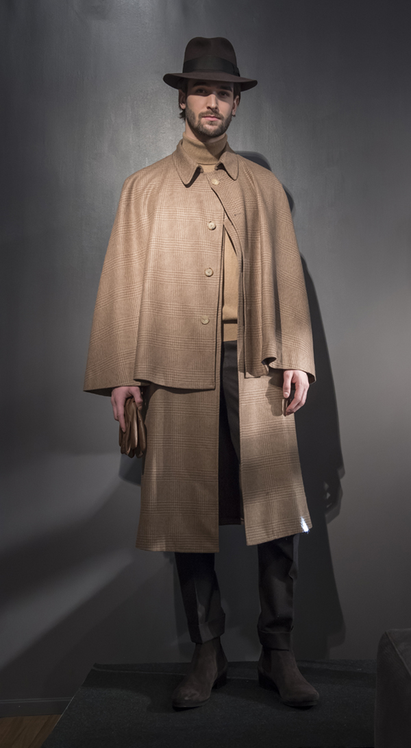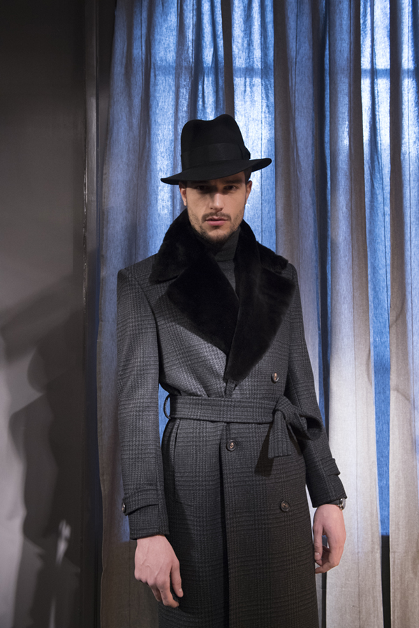 Especial importancia toma la silueta slim con abrigos más largos. Esta silueta remarca el icónico hombro cigarette de Cifonelli.
