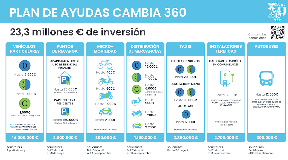El Ayuntamiento de Madrid ha dado los primeros pasos para iniciar un nuevo programa de renovación de vehículos con carácter ecológico en la ciudad, el denominado plan de ayudas Cambia 360 que viene aplicando desde hace años y que en esta edición de 2025 contará con un presupuesto mínimo aproximado de 10 millones de euros que podría superar los 22 millones de euros.