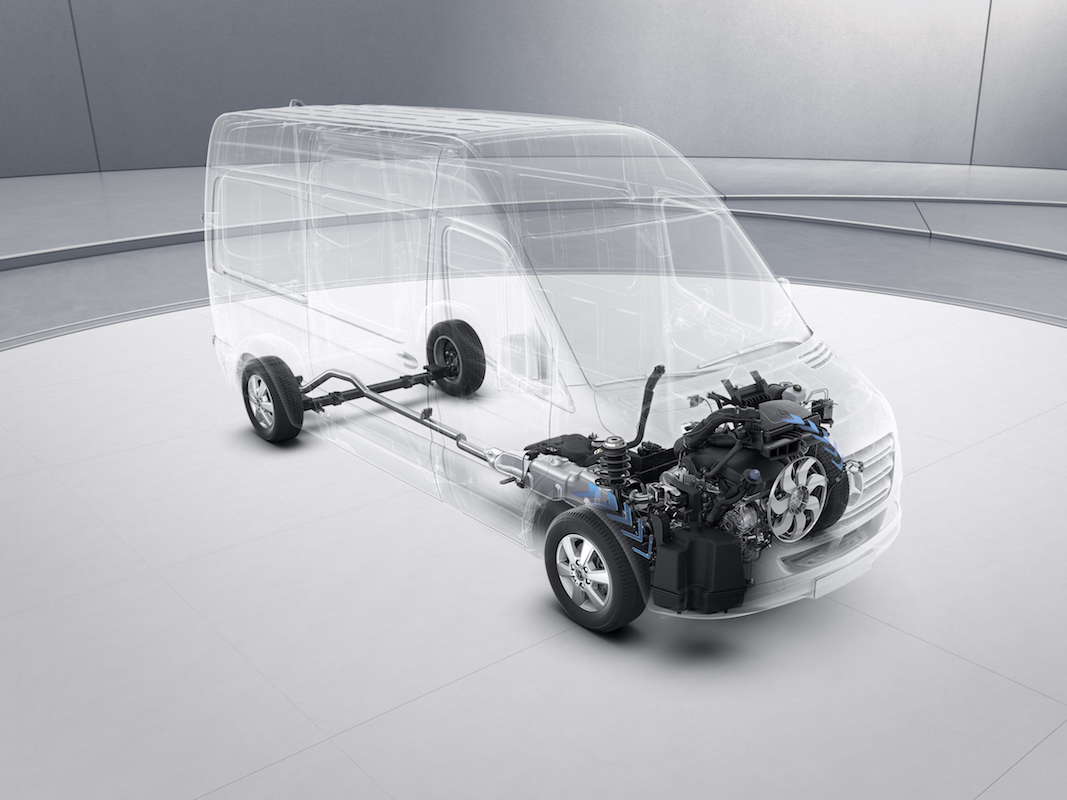 Los ya conocidos sistemas de propulsión de tracción trasera y a las cuatro ruedas se complementan ahora con un nuevo sistema de tracción delantera, por lo que, por razones inherentes a su diseño, la carga útil de las versiones de tracción delantera es 50 kilos superior a la de tracción trasera, al tiempo que un plano de carga 80 milímetros más bajo hace que la carga y descarga de las Sprinter comerciales, y el acceso y salida desde el espacio de ocio y descanso de las versiones Combi, sea considerablemente más cómodo.