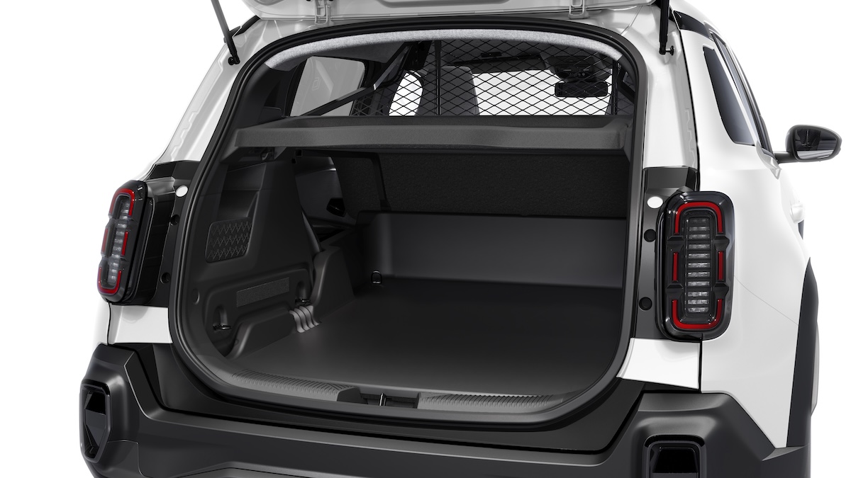 En este sentido, el espacio posterior tradicional sustituye los asientos traseros por un suelo reforzado de plástico, un panel de retención y ganchos de sujeción, lo que permite alcanzar una capacidad de carga de 940dm³ y una carga útil de hasta 375kg a este vehículos, con una longitud de carga máxima de 1,20 metros.