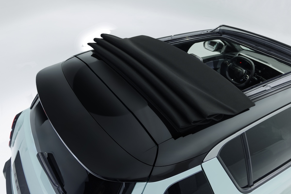 A partir de esta configuración, la estructura del techo emplea materiales plásticos en lugar de componentes metálicos y una solución de plegado en tres secciones, lo que reduce el peso total del conjunto y contribuye a mantener la eficiencia del vehículo.