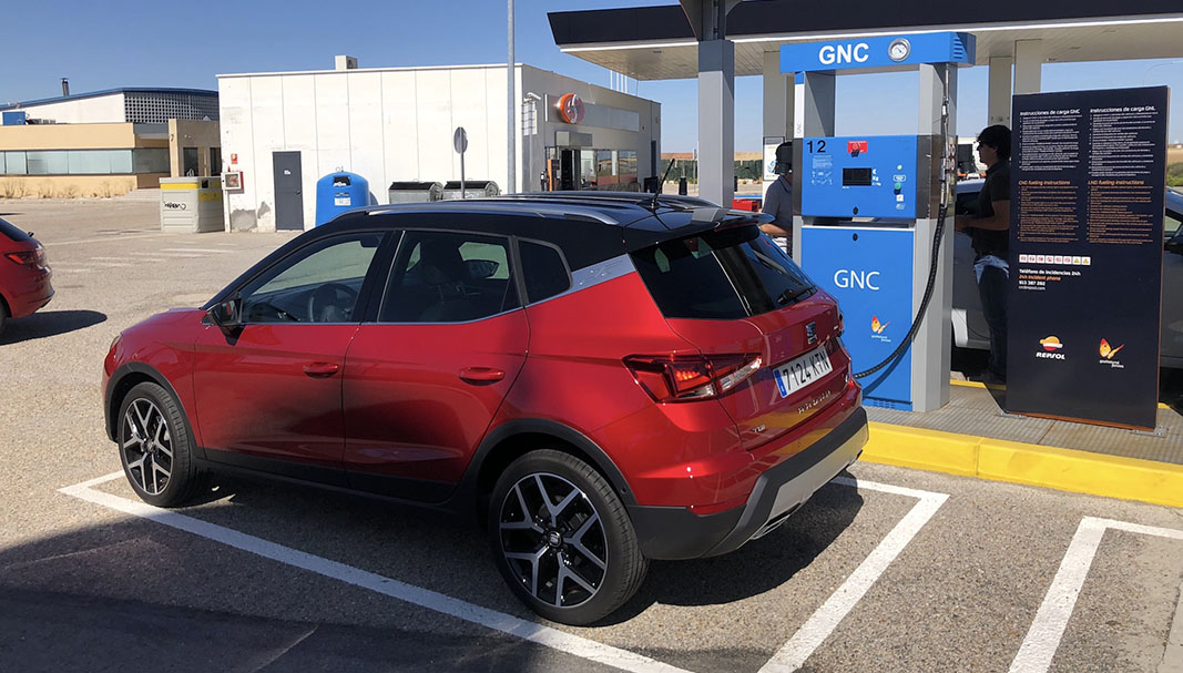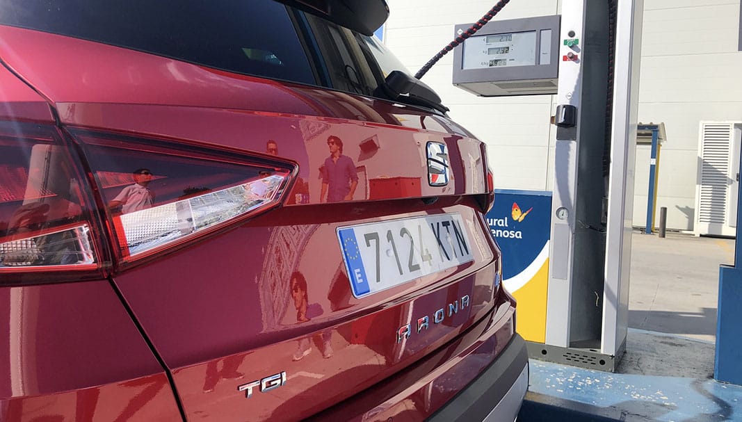 Hemos efectuado el trayecto un día de diario normal, con temperatura normal y circulando por carretera a la velocidad legal. En un Seat Arona 1.0 TGI de 90CV con cambio manual. ¿Por qué hemos elegido el Arona? Sencillo. Teníamos la posibilidad de elegir entre el Leon, el Leon ST y el Ibiza. Todos ellos vehículos muy floteros, pero nos van a permitir que escojamos este pequeño SUV: este año está triunfando en el mercado de renting para particulares, con más de 4.000 unidades comercializadas ya. No va mal.