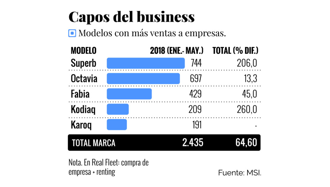 En el canal de empresas y flotas, el crecimiento de Skoda también ha sido significativo en los últimos años, y el punch que añadirán los SUV, que ya se está notando, aportará unas cifras que complementarán perfectamente los objetivos anuales del fabricante. Las entregas de los dos modelos representaban ya el 18% de todas las ventas de Skoda en el canal de empresas en los cinco primeros meses del ejercicio actual, y suponían casi el 17% —400 unidades— del total del segmento de empresa con mayor índice de rentabilidad, el Real Fleet que suma las compras directas realizadas por las empresas más el renting.